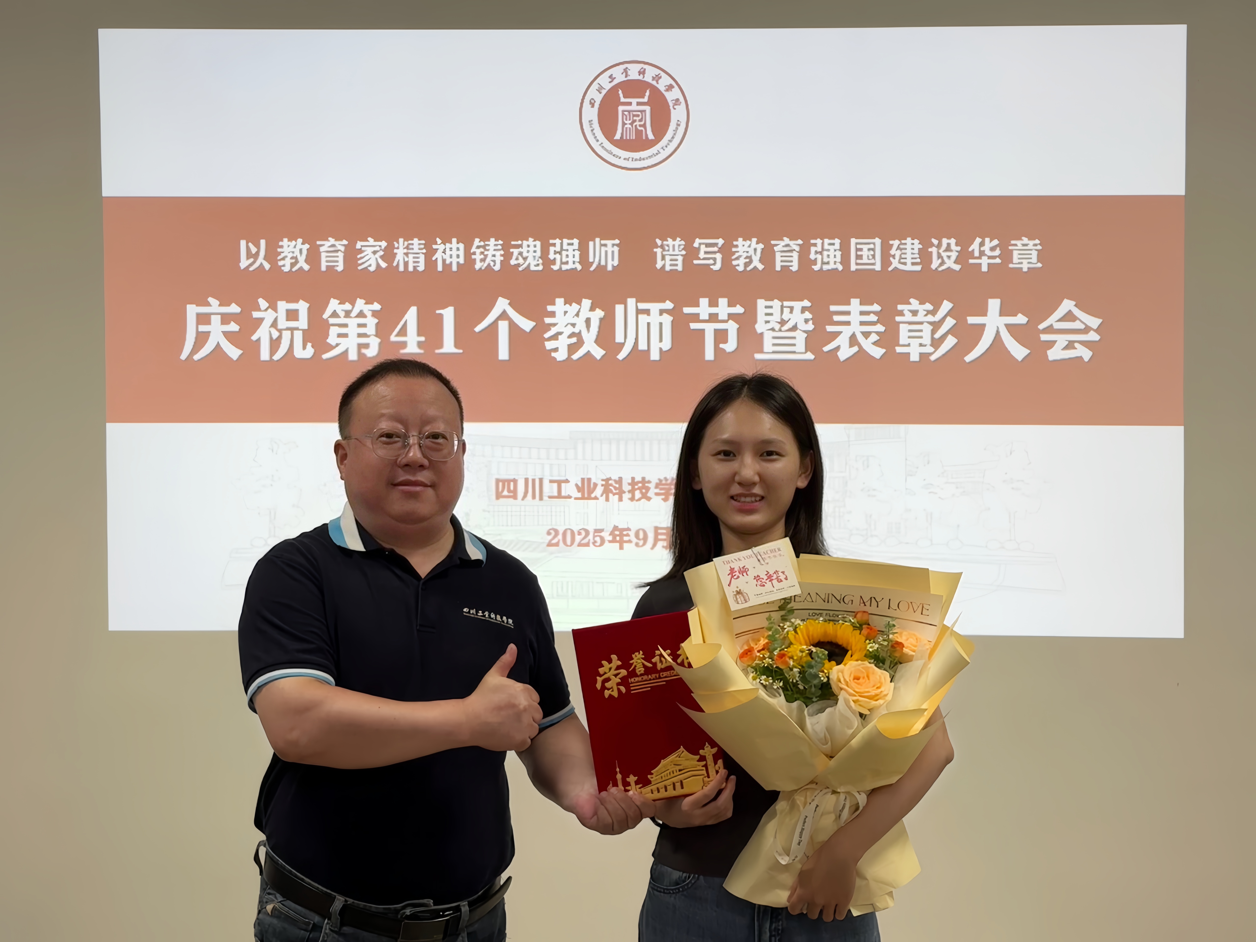 老师以及荣获学校“优秀教育工作者”称号的徐莹老师颁发荣誉证书。部门同事代表向两位受表彰老师献花,现场响起热烈掌声。