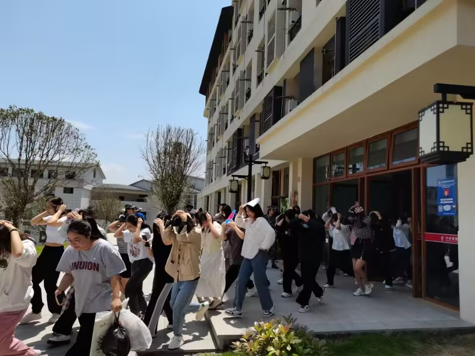 随后,在龑江宿舍也进行了相应的演练,学生们积极参与、听从指挥,做到了安全、快速、有序,达到了预期效果。