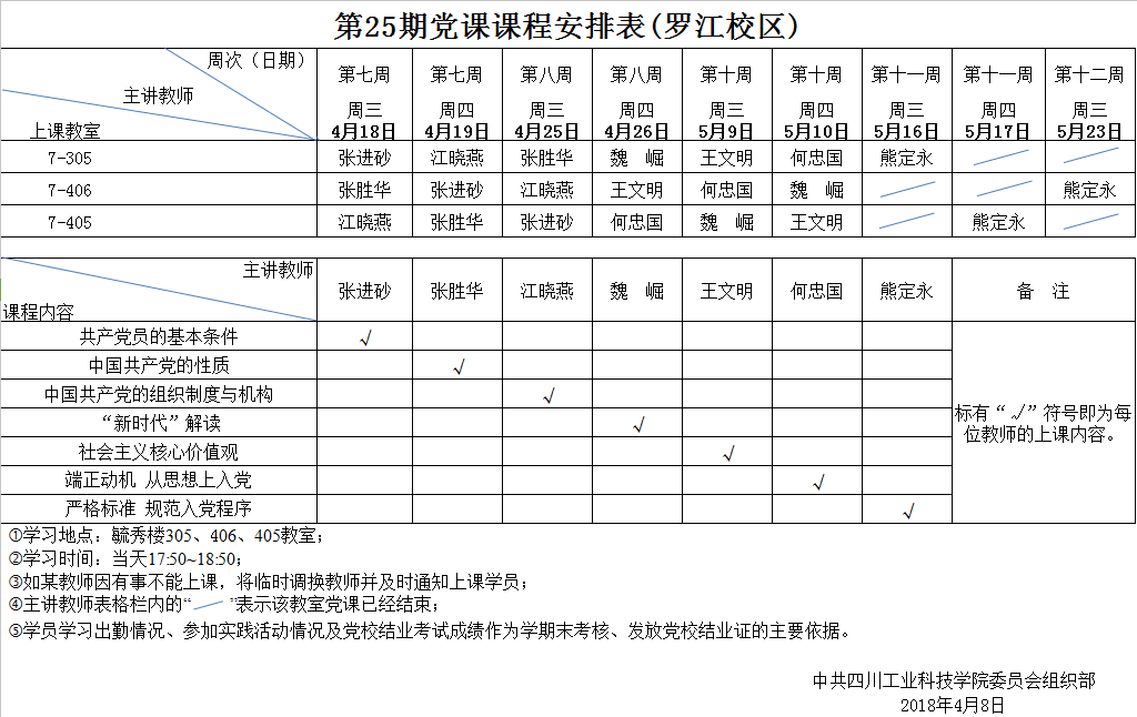 第25期党校党课安排表(罗江校区)