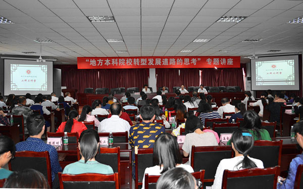 相关专家作了题为《地方本科院校转型发展道路的思考》的专题讲座。从国家转型、高等教育转型、职业教育转型大背景下,深入分析了当前地方本科院校发展面临办学定位不清、专业设置趋同、人才培养模糊等主要问题,主要围绕“定位”、“转型”、“教改”等三个方面,结合我国高等教育发展现状、趋势等,结合自身工作经历和思考就地方本科院校“为什么转”、“转什么”、“怎么转”等重要问题作了深入透彻的讲解和分析,对当前学校转型发展具有重要的现实指导意义。