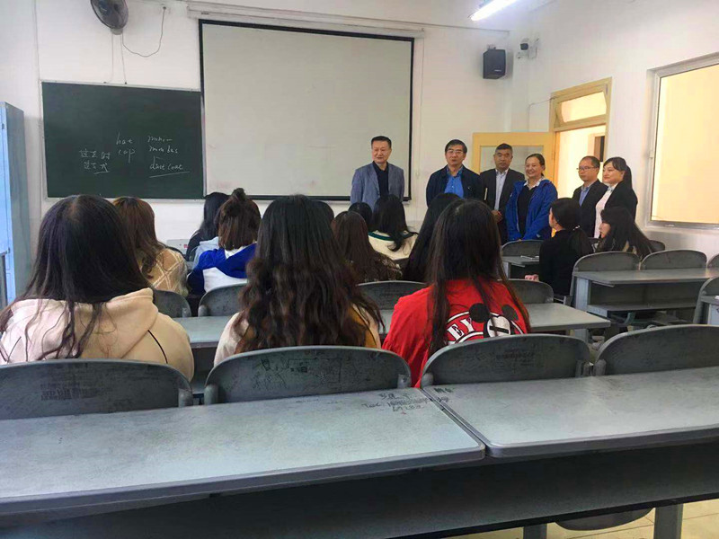 校领导在教务处、党政办等相关负责人的陪同下对绵竹校区教学区上课的教学情况进行了详细检查。