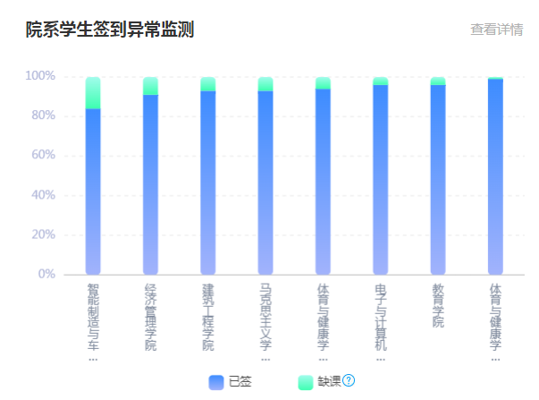 上周全校学生课堂签到率为94.29%,具体分布如下: