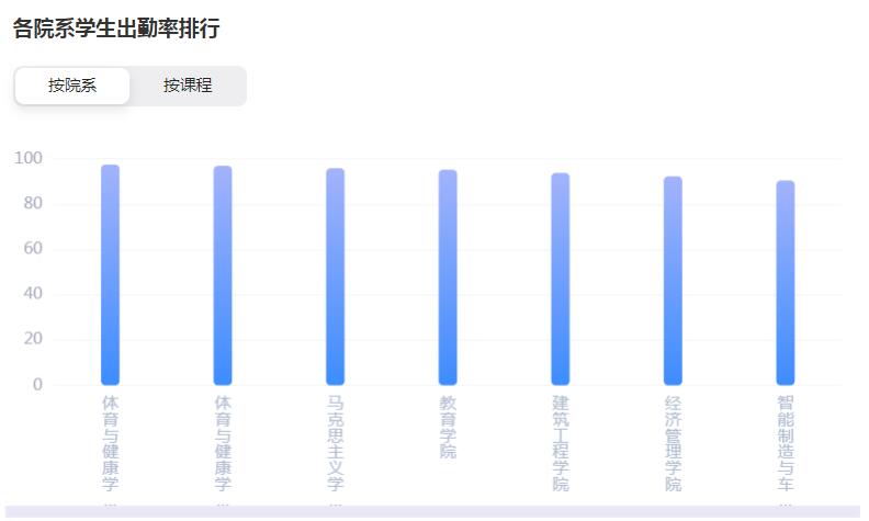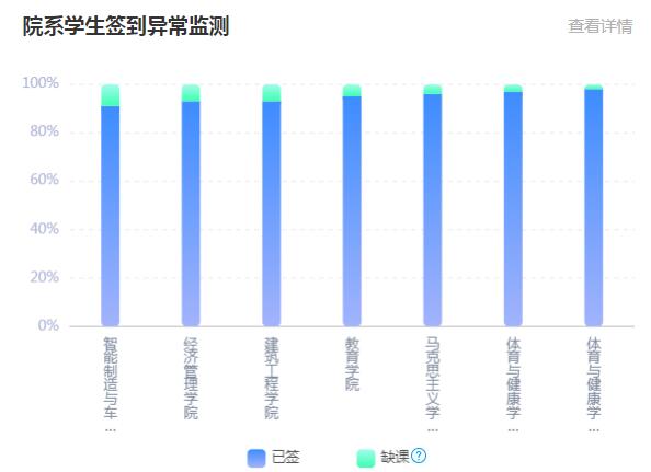 上周全校学生课堂签到率为96.12%,具体分布如下: