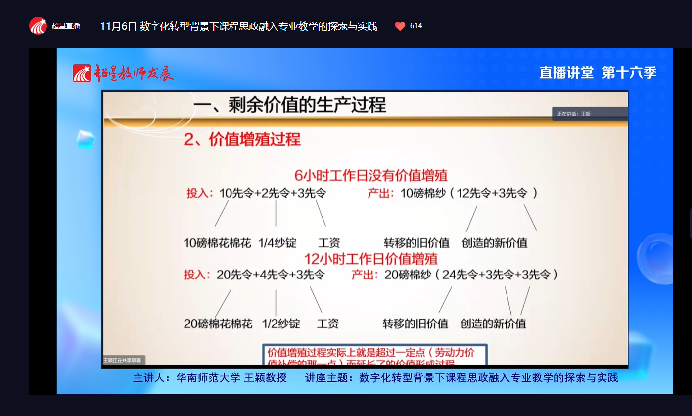 为深化“课程思政”教学改革,推动数字技术与教育教学深度融合,11月6日下午,学校教师教学发展中心组织全校无课教师集中观看了超星教师发展直播讲堂第十六季第七期网上直播讲座。