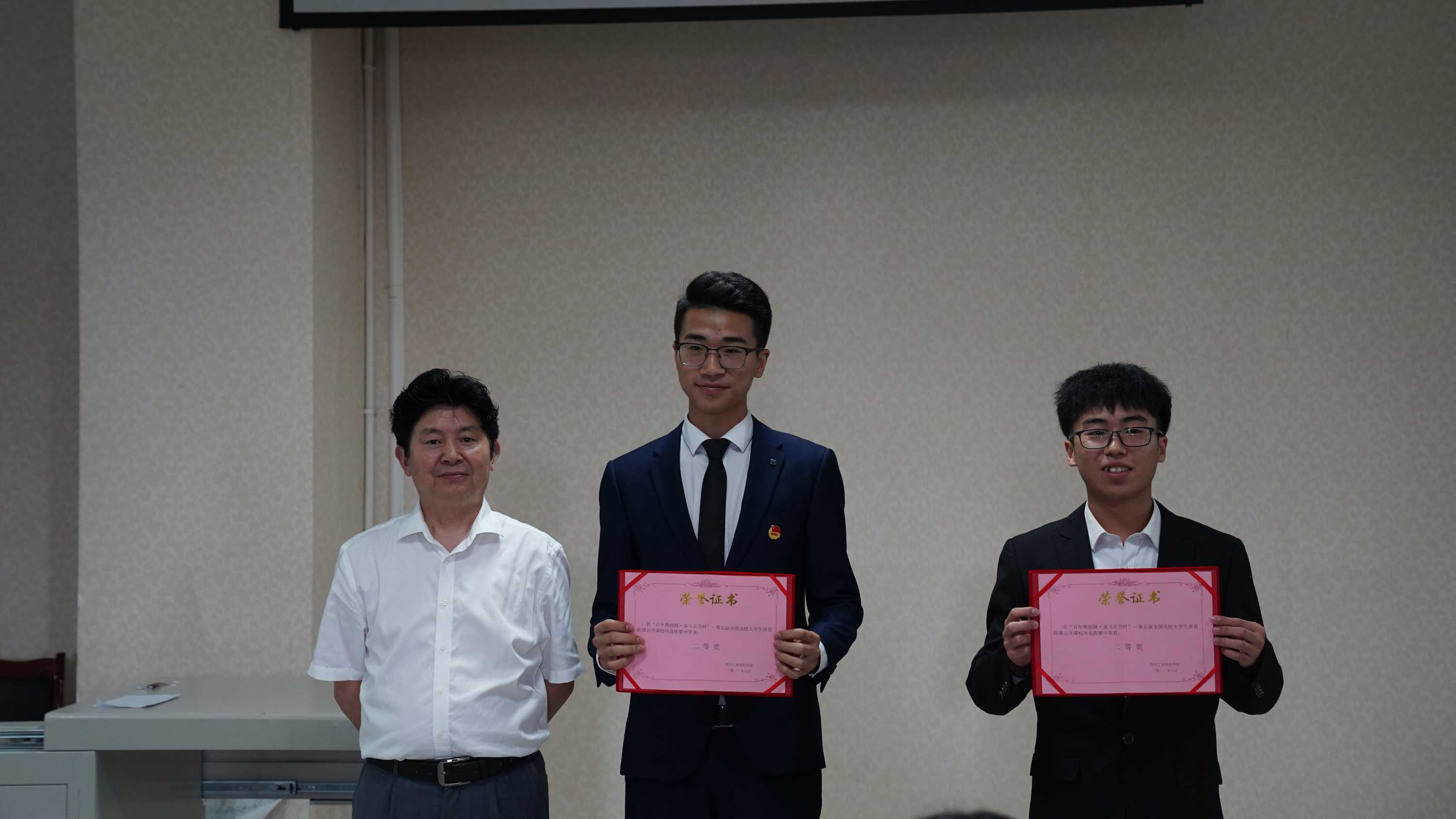 经过紧张激烈的角逐,由马克思主义学院形势与政策教研室蔡林老师指导的杨峻、罗巍同学主讲的《十秩党旗红 锤镰赤旗翩》勇摘桂冠。