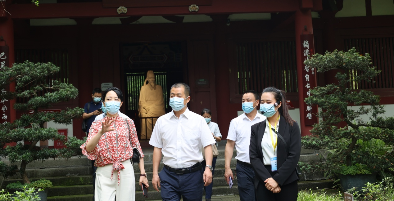 李白纪念馆党支部书记瞿江及副馆长蒋戈对张继华一行的到来表示欢迎并陪同参观李白纪念馆,馆内讲解员不仅声情并茂的讲解李白在江油的经历、所作诗歌及反映其诗歌的书法和画作,并现场演唱李白诗篇,带领带领大家领悟大唐诗歌魅。
