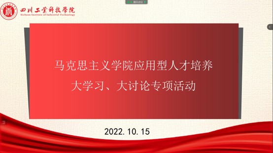 为深入贯彻落实新时代全国高等学校本科教育工作会议精神,加快振兴本科教育,构建高水平人才培养体系,全面提高高校人才培养能力,进一步落实中央关于引导部分地方普通高校办学应向应用型转变的决策部署,持续推动学校高水平应用型人才培养与教学改革。2022年10月15日下午三点,我院全体教师参加了线上开展的马克思主义学院应用型人才培养大学习、大讨论专项活动。