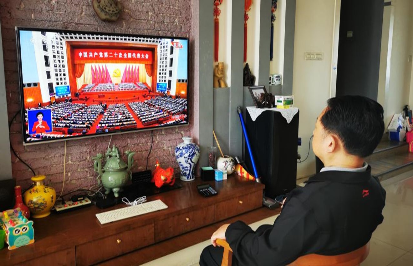 在疫情防控点、在办公室、在家,我院教师端坐在电视机、电脑前,观看党的二十大开幕会。大会进行期间,我院教师工作群发来一张张收看党的二十大开幕式的照片,老师们认真聆听,记录着习近平总书记作报告的内容。