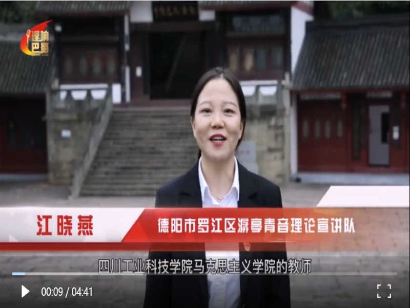 近日,由德阳市罗江区组织、学校马克思主义学院江晓燕副教授参与录制的“潺亭青音”理论宣讲——“弘扬延安精神 走好新的赶考之路”微视频荣登“学习强国”,这是学校深入学习宣传贯彻党的二十大精神的重要体现和重大成果。