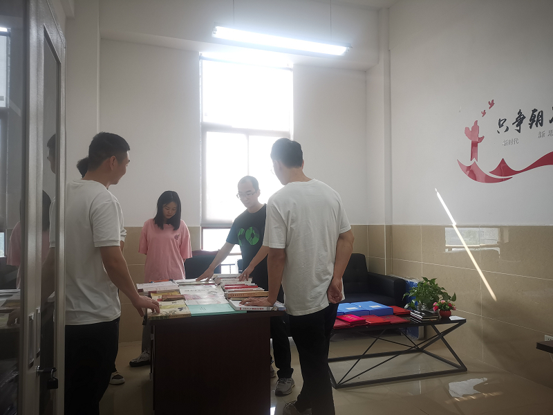 随后,校团委王波、陈财老师和电子信息与计算机工程学院辅导员赖双老师参观了我院红色歌谣研究中心成果作品展,就加强理论研究和调查研究工作进行商议。