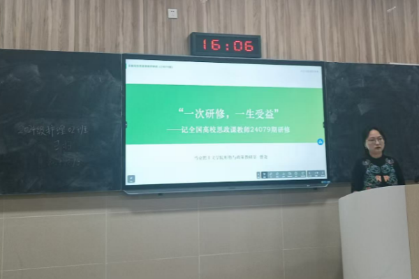 学院曾尧老师分享了参加全国高校思政课教师研修心得《一次研修,一生受益》。曾尧老师从新闻案例教学素材采编研修、黄河流域的生态文明、八步沙的绿色传奇以及八步沙林场守护的移民新村四个研修主题,分享了她的收获与感悟,并指出这次研修学习围绕的核心就是如何用思政老师的眼光去发现自己身边所经历的、所看到的东西,并将它带到自己的思政课堂上。