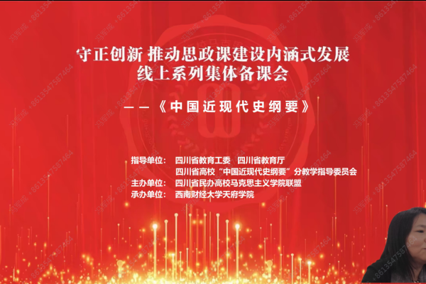 12月19日,由四川省民办高校马克思主义学院联盟主办、西南财经大学天府学院马克思主义学院承办,以“守正创新推动思政课建设内涵式发展”为主题的系列集体备课会的第三场会议正式举行。马克思主义学院“中国近现代史纲要”课程教研室全体专职教师参加会议。