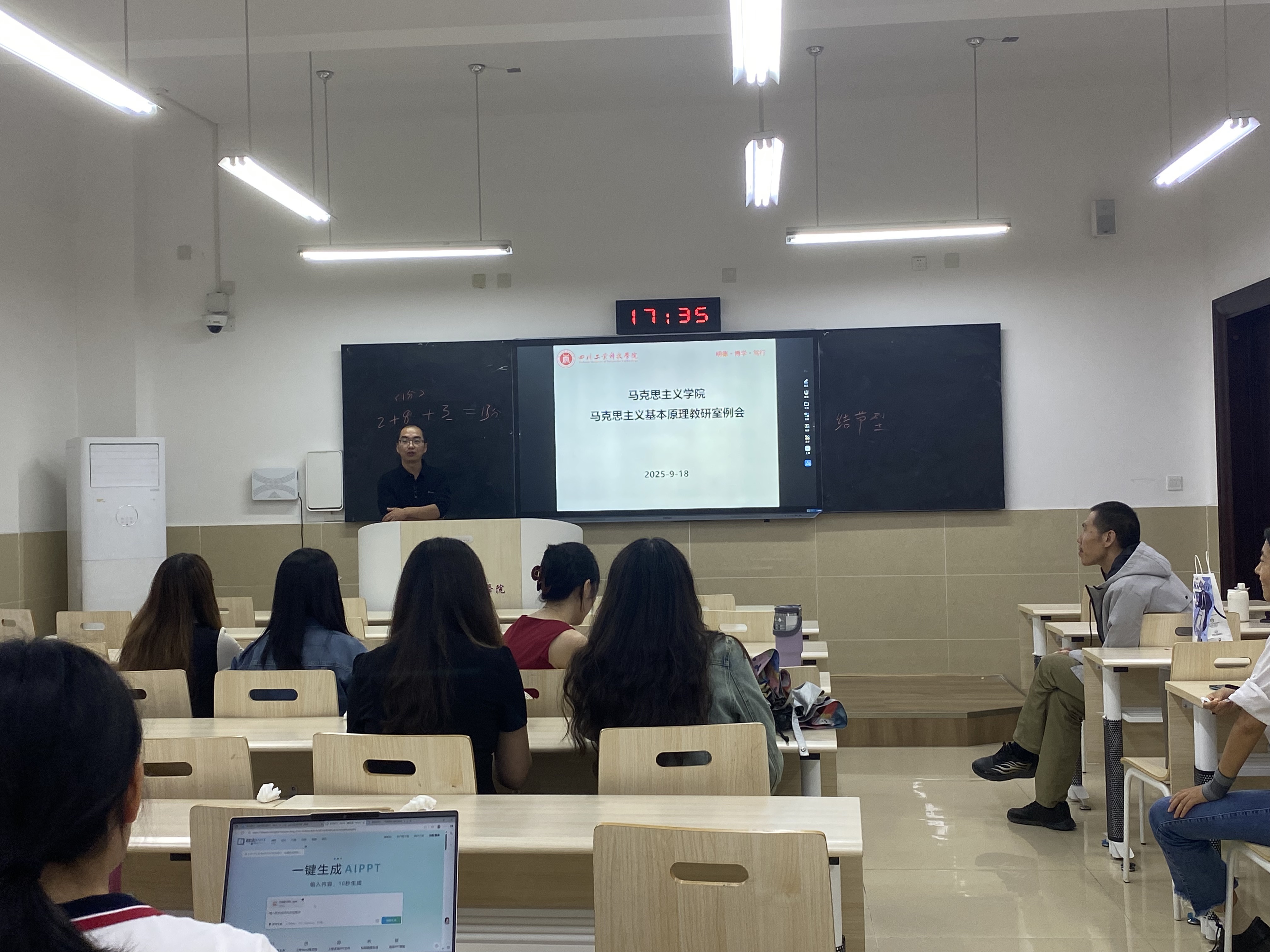 为深化教学改革,提升教学质量,9月18日下午,马克思主义基本原理教研室在龑江B305教室举行教研会,教研室主任冯军成主持会议,马原教研室全体教师积极参会。