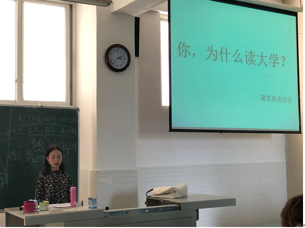 近日,思政部老师张蕊利用课堂时间,针对2017级新生在大一下学期的有所懈怠的学习状态,开展了演讲题目为:“你,为什么读大学?”的课堂演讲活动,希望通过这样一个演讲活动,再次引导学生思考读大学的意义以及应当如何度过大学时光,当不负青春,不负时间。