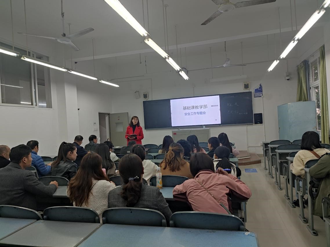 10月28日,基础课教学部在钟灵楼102召开基础课教学部安全工作专题会议,会议由基础课教学部副主任许敏主持,数学、物理和英语课程全体未授课教师参加了会议。