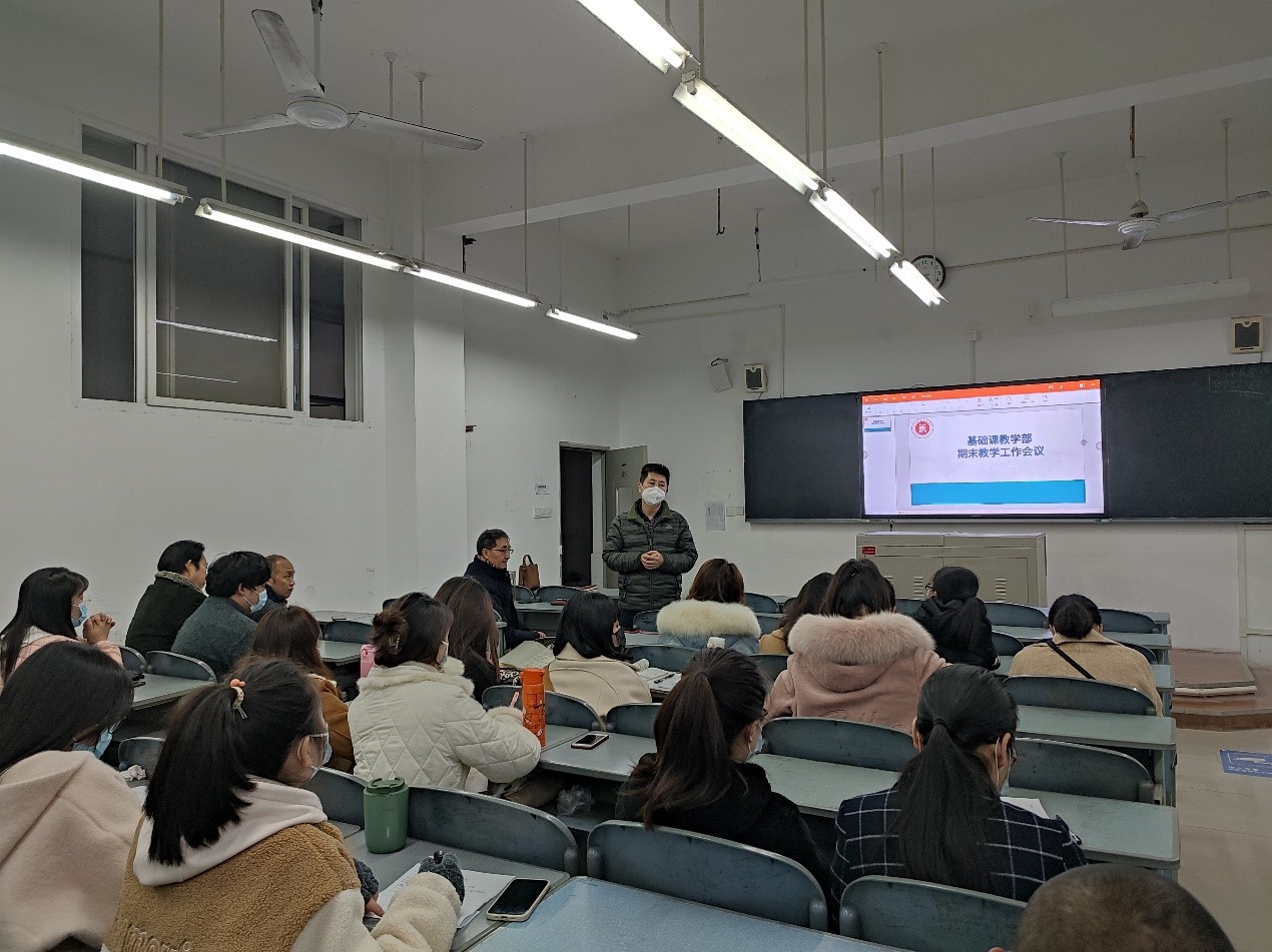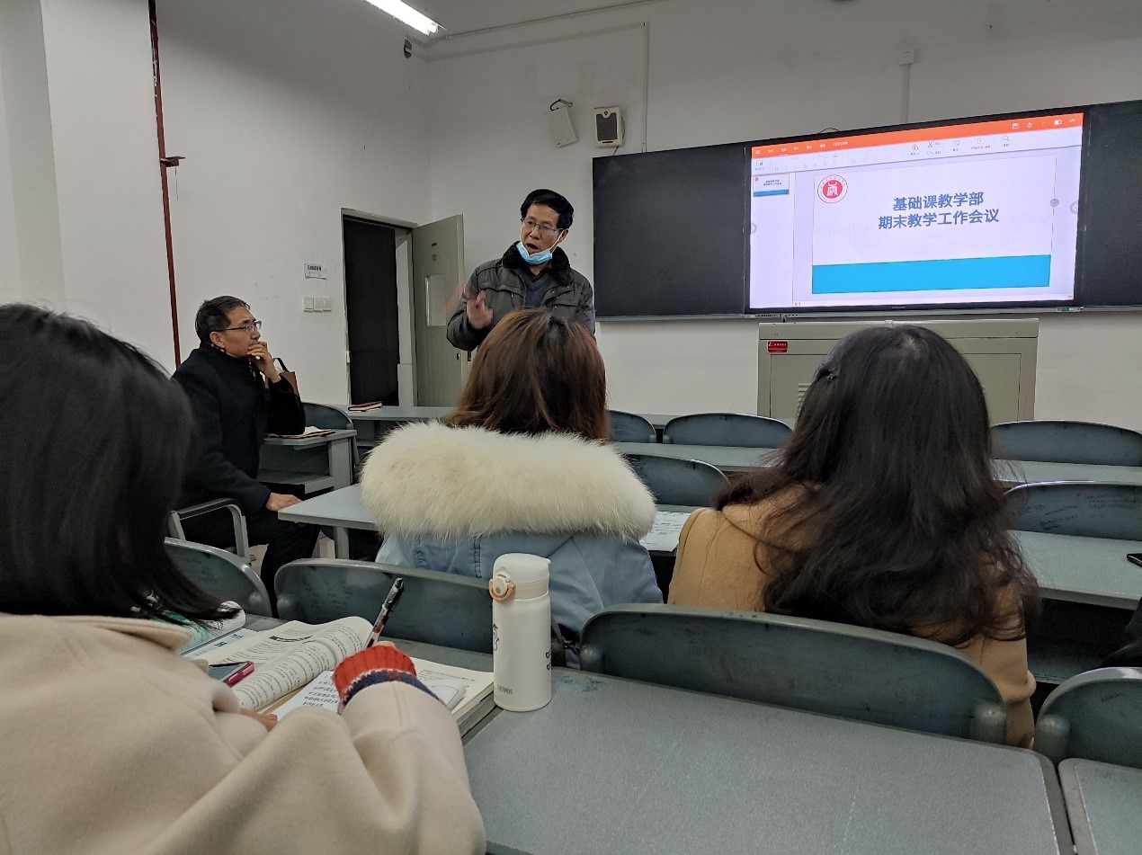 11月18日下午,基础课教学部在钟灵楼102召开期末教学工作会议,会议由基础课副主任许敏主持,英语、数学和物理教研室全体未授课教师参加了会议。