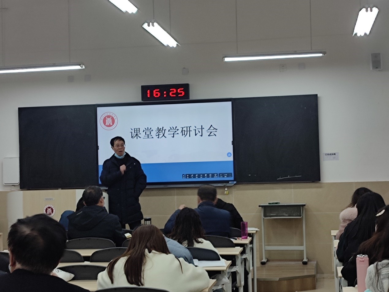 此次会议主要邀请了朱万泽教授、童生海教授和黄天君督导为大家进行课堂教学的相关交流。首先,朱教授指出了自己在听取英语教师课程教学时发现的典型问题,即导入部分时间安排偏多、教学环节呈现不完整。他强烈建议大家注重课堂教学重心的突出性和前后环节严密的逻辑性。之后,童教授再次强调了导入环节在内容量和时间方面的合理性安排,并对lead in、background和introduction的区别进行了阐释,同时,提出了自己对各教学环节和整个单元的教学时长的安排,以供大家参考。最后,黄督导就近半个多月所听的课堂教学的反思进行了分享,在认可本部门教师相对较认真的态度和更优质的授课的同时,也逐一对刘刚、房迎春、高晓娟、董静等相关教师的课堂教学进行了点评,最终以四点思考为本次研讨会议画上了圆满的句号,即一是立德树人是教学的首要目标,每一堂课要尽可能渗透落实;二是以出口为导向,要根据培养技能型人才这个出口来思考课程;三是教学要有开展与收敛,每堂课得有始有终,在展开的同时也能做到收敛,如归纳要点和安排作业等;四是大学是生产思想的地方,课堂上要适当提供一些供学生思考的地方。