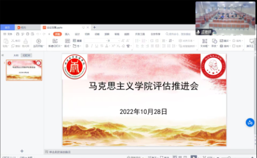 为了更好的引接评估,马克思主义学院于2022年10月28日召开评估工作推进会,全体教师通过线上线下结合方式参与会议。