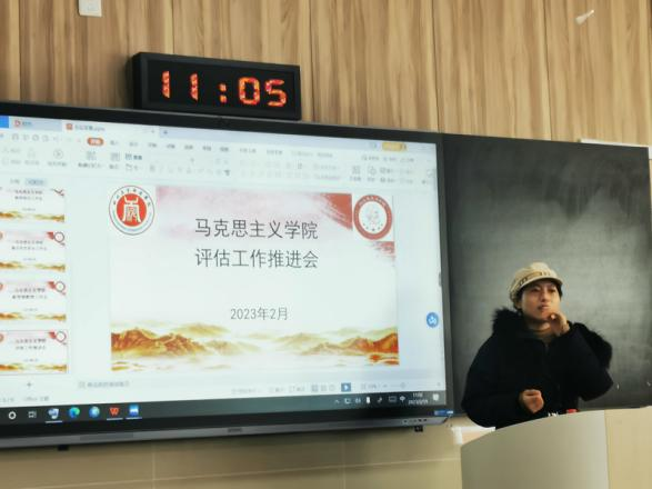 针对近期学校评估工作指示,马克思主义学院于2023年2月19日上午10点30分在龑江B212召开评估工作推进会,会议由马克思主义学院综合科副科长马军兰主持,马克思主义学院全体专兼职教师参会。