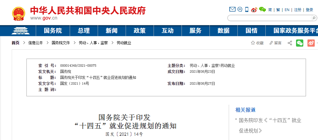 国务院日前印发《“十四五”就业促进规划》(以下简称《规划》)。