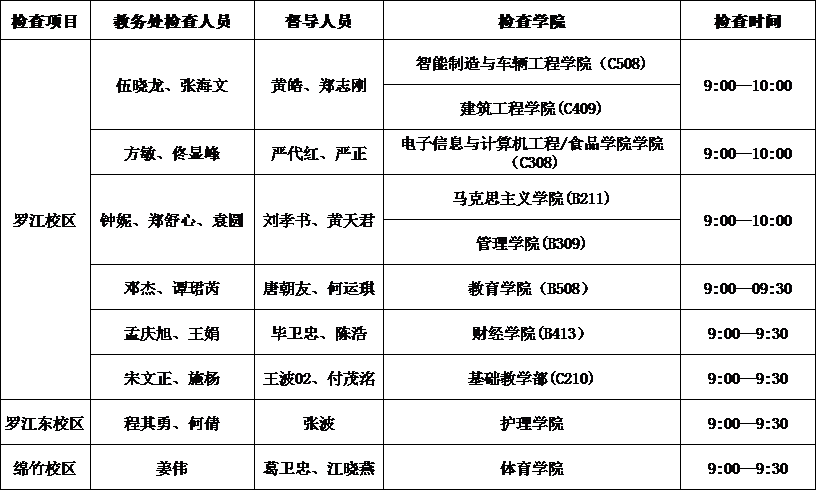 2.10周周四(428日),教务处和督导办组织人员(含督导专家)抽查,汇总、分析、总结抽查情况,并将抽查结果反馈给各二级学院。
