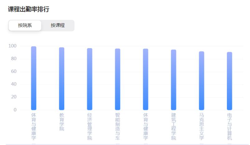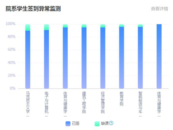 上周全校学生课堂签到率为94.21%,具体分布如下: