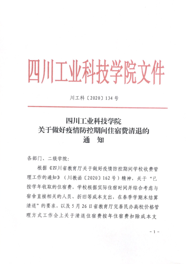 304永利集团官网入口关于做好疫情防控期间住宿费清退的通知