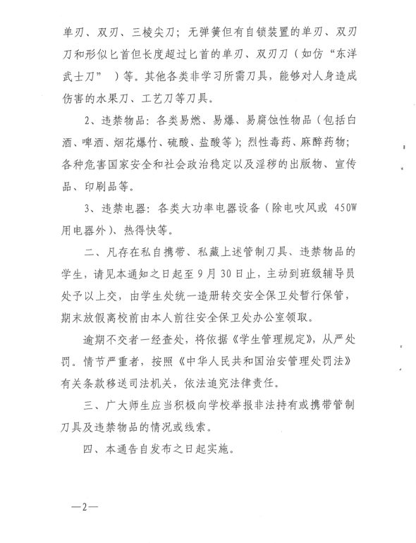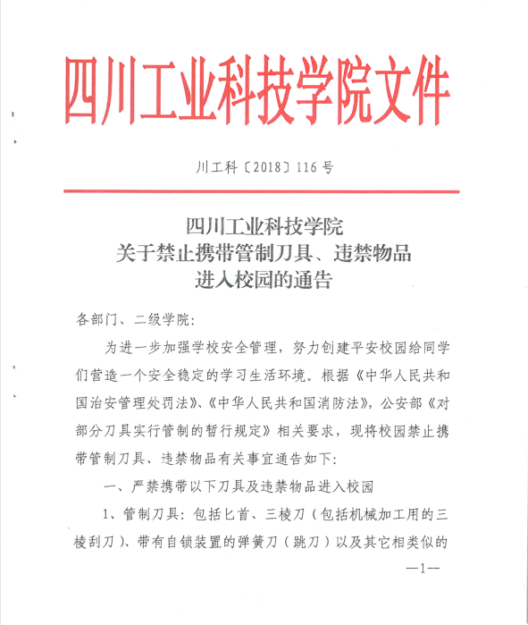 304永利集团官网入口关于禁止携带管制刀具、违禁物品进入校园的通告