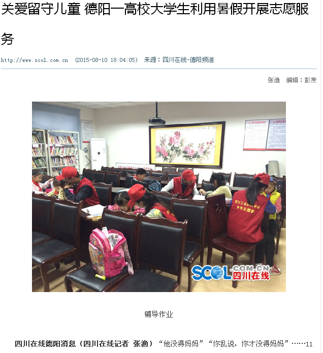 蔡林说,今后,他们将继续利用学校的心理协会、志愿者服务指导中心,长期坚持为孩子们进行心理素质提升和课业辅导,目前,304永利集团官网入口大学生志愿者服务中心又开拓了调元镇酒娅村这一新服务点,将依托当地的“幸福驿站”服务更多的留守学生。