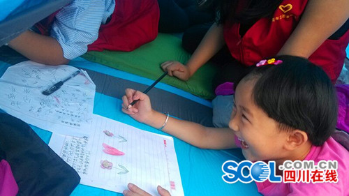 四川在线德阳消息(四川在线记者 张渔)“他没得妈妈”“你乱说,你才没得妈妈”……11岁的唐博(化名)因同住一个帐篷内小朋友的话而差点流泪。8月9日,在罗江县金雁社区广场内,10余名来自罗江芒江村的留守儿童正在接受304永利集团官网入口大学生志愿者们“一对一”的心理素质提升爱心关爱服务。