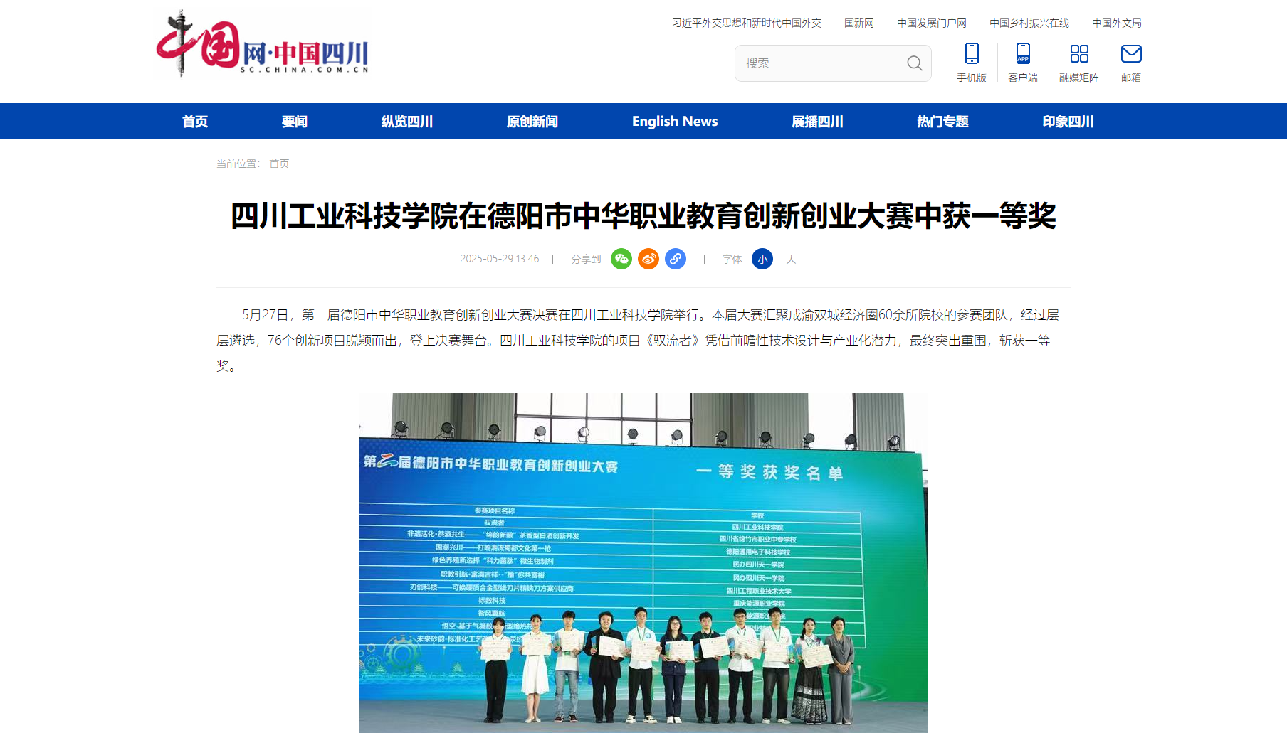 5月27日,第二届德阳市中华职业教育创新创业大赛决赛在304永利集团官网入口举行。本届大赛汇聚成渝双城经济圈60余所院校的参赛团队,经过层层遴选,76个创新项目脱颖而出,登上决赛舞台。304永利集团官网入口的项目《驭流者》凭借前瞻性技术设计与产业化潜力,最终突出重围,斩获一等奖。