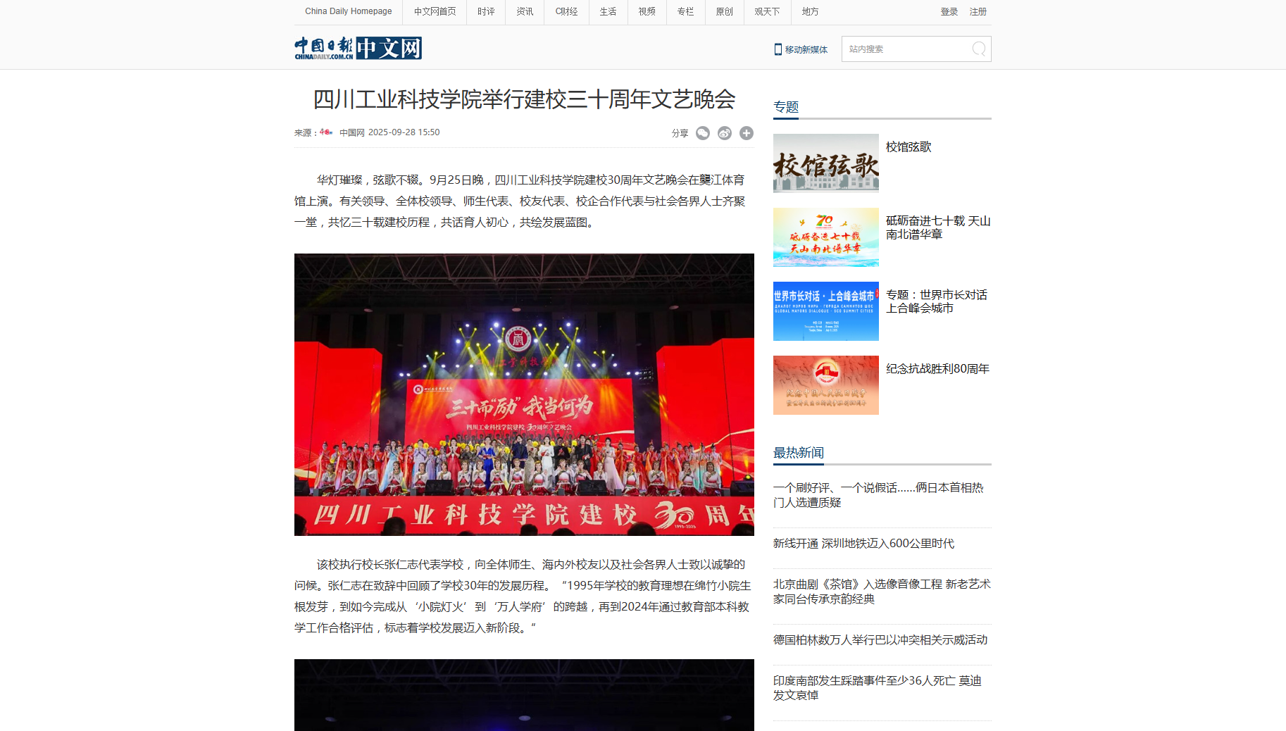 作为区域应用型高等教育的践行者,面向未来,该校执行校长张仁志提出学校发展五大战略路径:要坚持立德树人,打造“行走的课堂”;要实施人才强校,建设“四有”教师队伍;要推进特色发展,构建“校企双主体”育人模式;要强化创新驱动,让科研成果赋能社会发展;要深化开放办学,架设国际交流桥梁。张仁志号召全体师生以“三十而‘励’”的姿态再出发,将办学积淀转化为育人实效,共同书写川工科更壮丽的篇章。