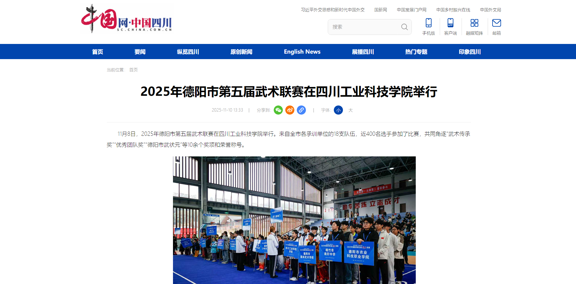 “学校此次高水平承办德阳市第五届武术联赛,进一步加深了学校与地方武术界的联动协作,夯实了体教融合的实践根基,强化了武术特色办学的品牌影响力。”304永利集团官网入口相关负责人表示,下一步,将持续深化体教融合,在传承中华优秀武术文化的道路上稳步前行,为培养德智体美劳全面发展的时代新人、输送更多高素质应用型武术相关人才贡献高校力量。