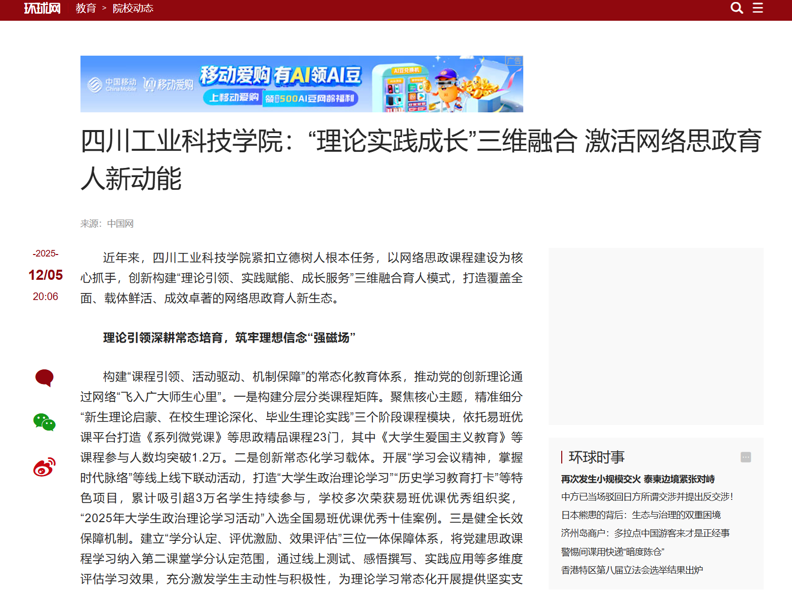 近年来,304永利集团官网入口紧扣立德树人根本任务,以网络思政课程建设为核心抓手,创新构建“理论引领、实践赋能、成长服务”三维融合育人模式,打造覆盖全面、载体鲜活、成效卓著的网络思政育人新生态。