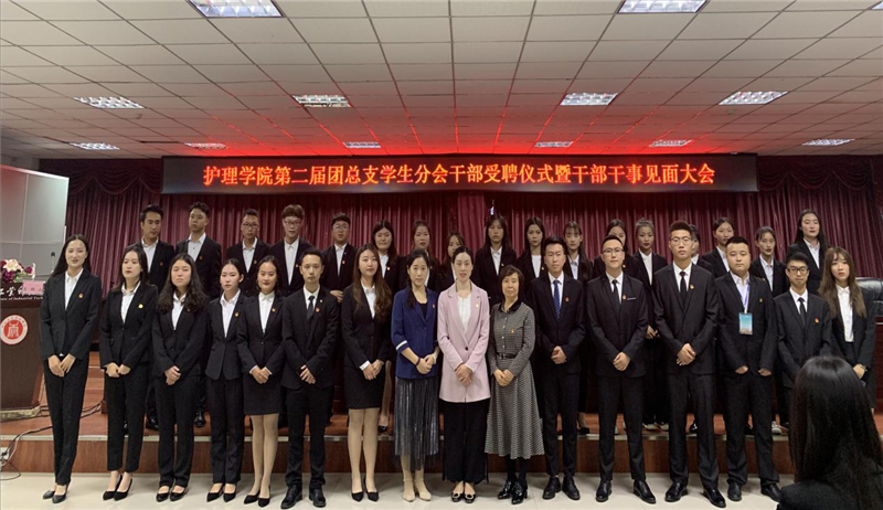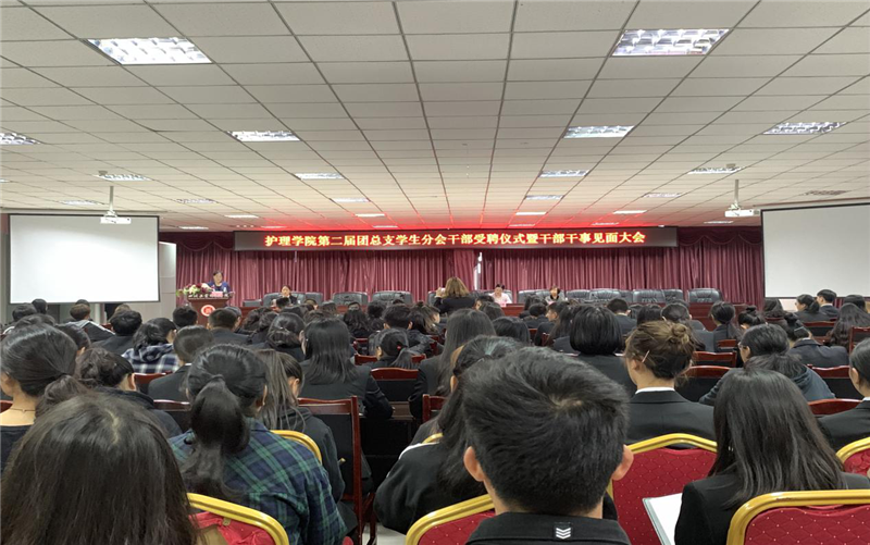 10月11日晚,护理学院在图书馆408室组织召开第二届团总支学生分会干部受聘仪式暨干部干事见面大会。学院副院长刘琼碧、校团委副书记王成鑫、学院团总支书记李丹出席了会议,学院第二届团总支学生分会全体成员共计190余人参加了会议,会议由学生分会秘书长余渊杰主持。