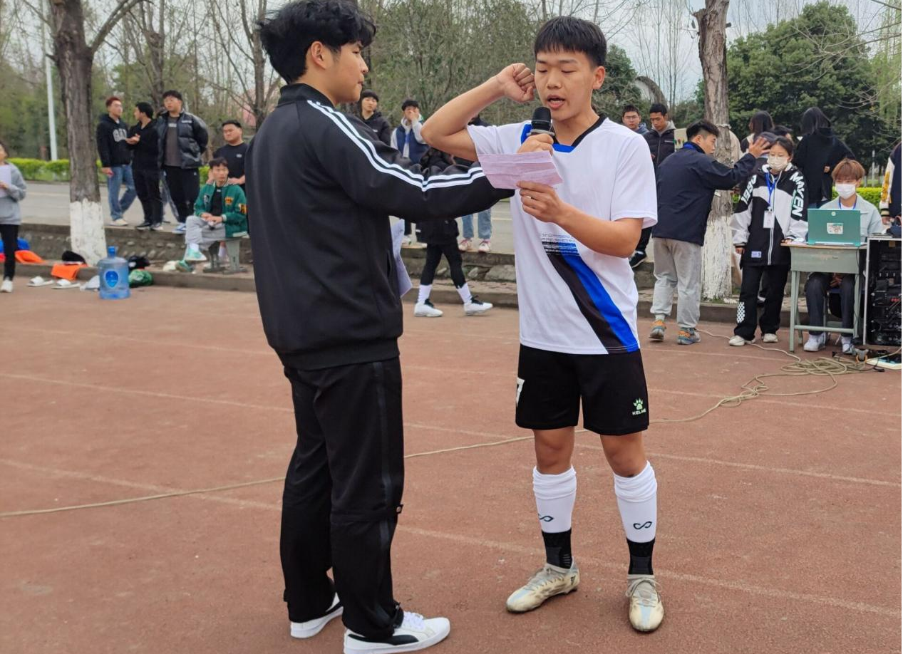 李富兵在开幕式上致辞:通过举办校园足球比赛,增强同学们的团队合作意识,促进个性发展和完善,提高意志品质,强化心理承受力。所有参赛人员应遵守比赛的各项规章制度,认真履责。希望同学们秉持“友谊第一,比赛第二”的理念,踢出风采,踢出水平。