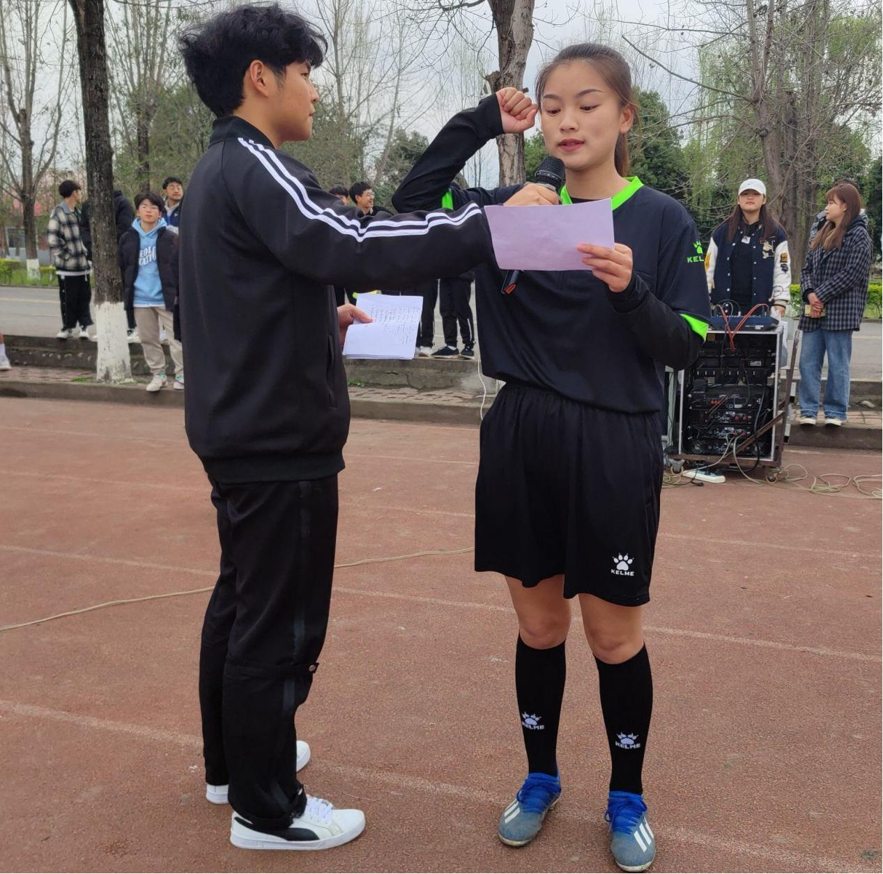 裁判代表宣誓完毕后,开场文艺部开场表演开始。曼妙的身姿舞动着青春的旋律,跳动音符绽放在初春的绿茵场上。随着李书记的一声令下,宣布本次“体健杯”足球赛正式开始!