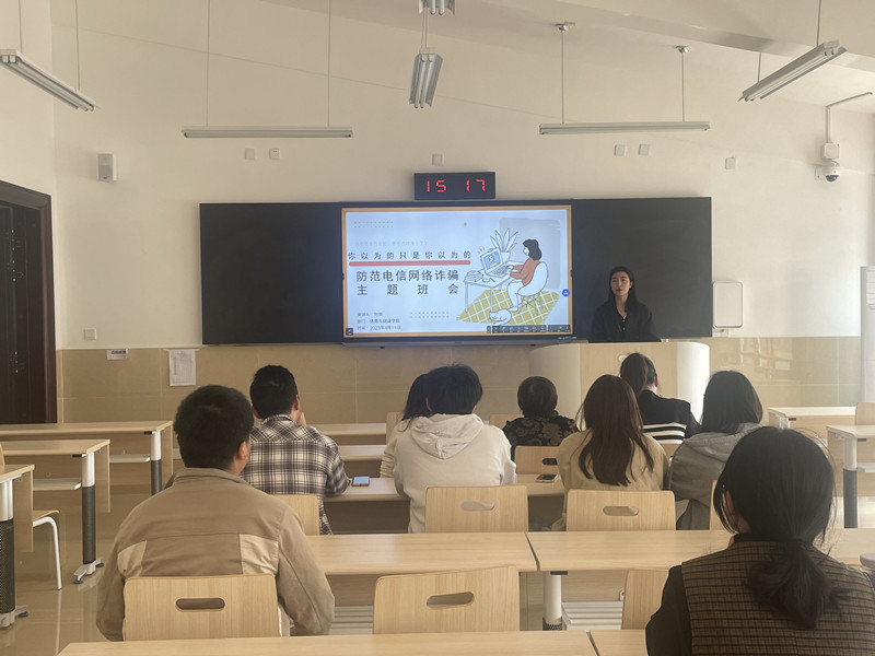 比赛以“防范电信网络诈骗”为主题进行班会展示,包括班会策划、班情分析、班会目的及设计等多个方面。各位辅导员经过前期的认真准备、精心设计,分别从防范电信网络诈骗的背景、各个班级的班情介绍、案例分析、知识普及、活动延伸等多个角度给全场老师呈现了一堂堂精彩的班会。
