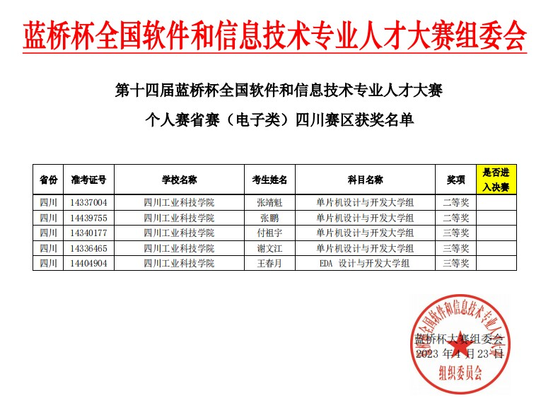 近日,学院学生参加第十四届蓝桥杯全国软件和信息技术专业人才大赛个人赛省赛(电子类),共获得二等奖两项,三等奖三项。