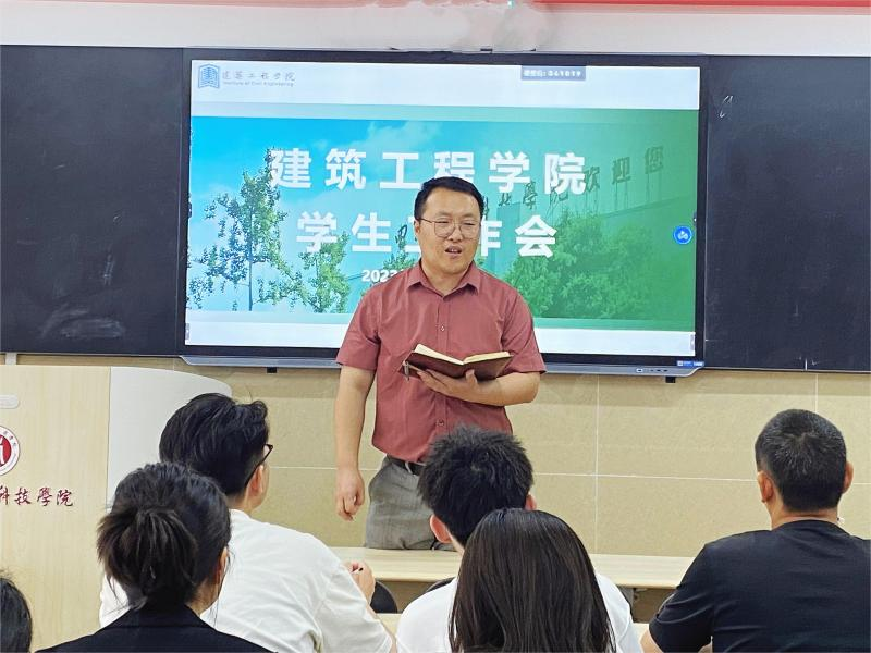 为总结前期学院学生工作,稳步有序推进学院期末学生工作的开展,建筑工程学院于5月16日下午在龑江学村C412组织召开五月学生工作会。建筑工程学院党总支副书记张东国、学工办副主任周涛及全体专兼职辅导员参加会议。张东国主持会议。