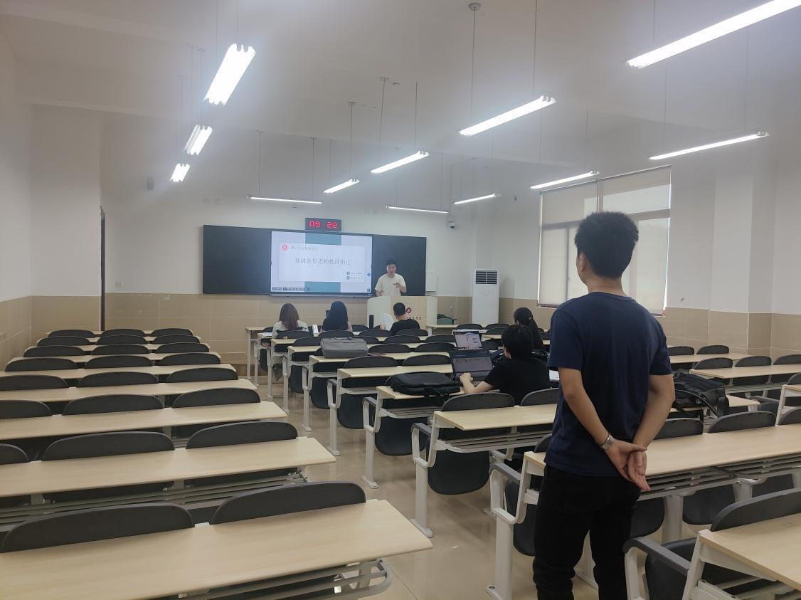 图为电子信息与计算机工程学院学生答辩旁听现场