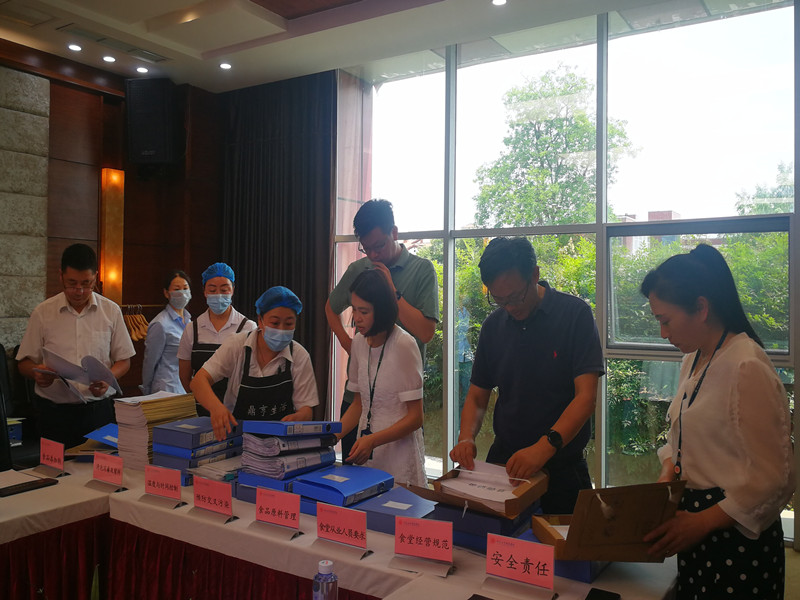 随后,在图书馆108会议室召开了座谈会,学校副校长、食品安全总监黄斯欣就学校食堂的基本情况、规章制度建设、从业人员考核培训、硬件设施强化、食品安全监管等方面向检查组作汇报。专家组严格按照《四川省学校食品安全风险防控评议细则》的文件要求,现场查阅了规章制度、记录台账、检测报告等相关资料。经过认真评审后,专家组进行了意见反馈。