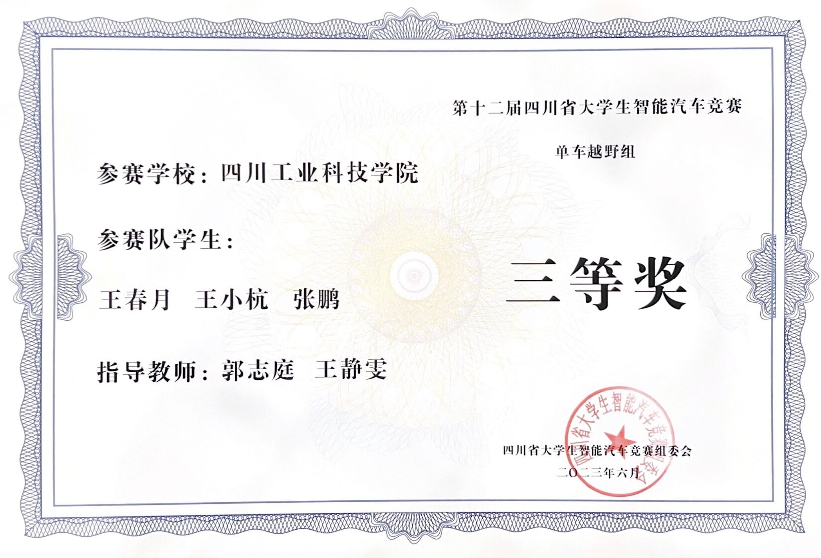 6月9日至10日,2023年第十二届四川省大学生智能汽车竞赛在乐山师范学院进行。学校智能制造与车辆工程学院共派出4支队伍参加三轮摄像头、四轮摄像头、单车越野三个组别的竞赛,共获得二等奖1项、三等奖2项,刷新学校参加该项赛事的最好成绩。