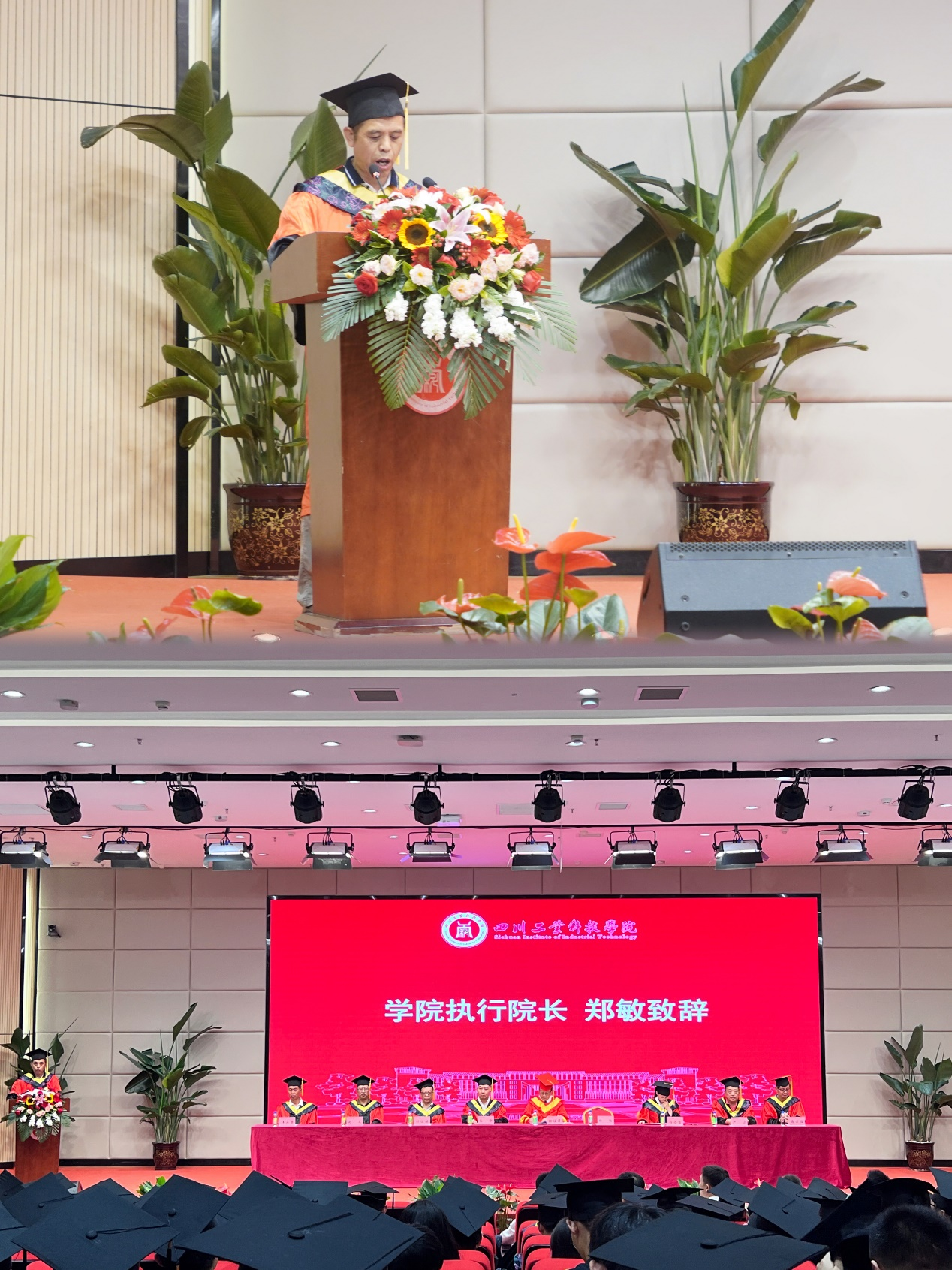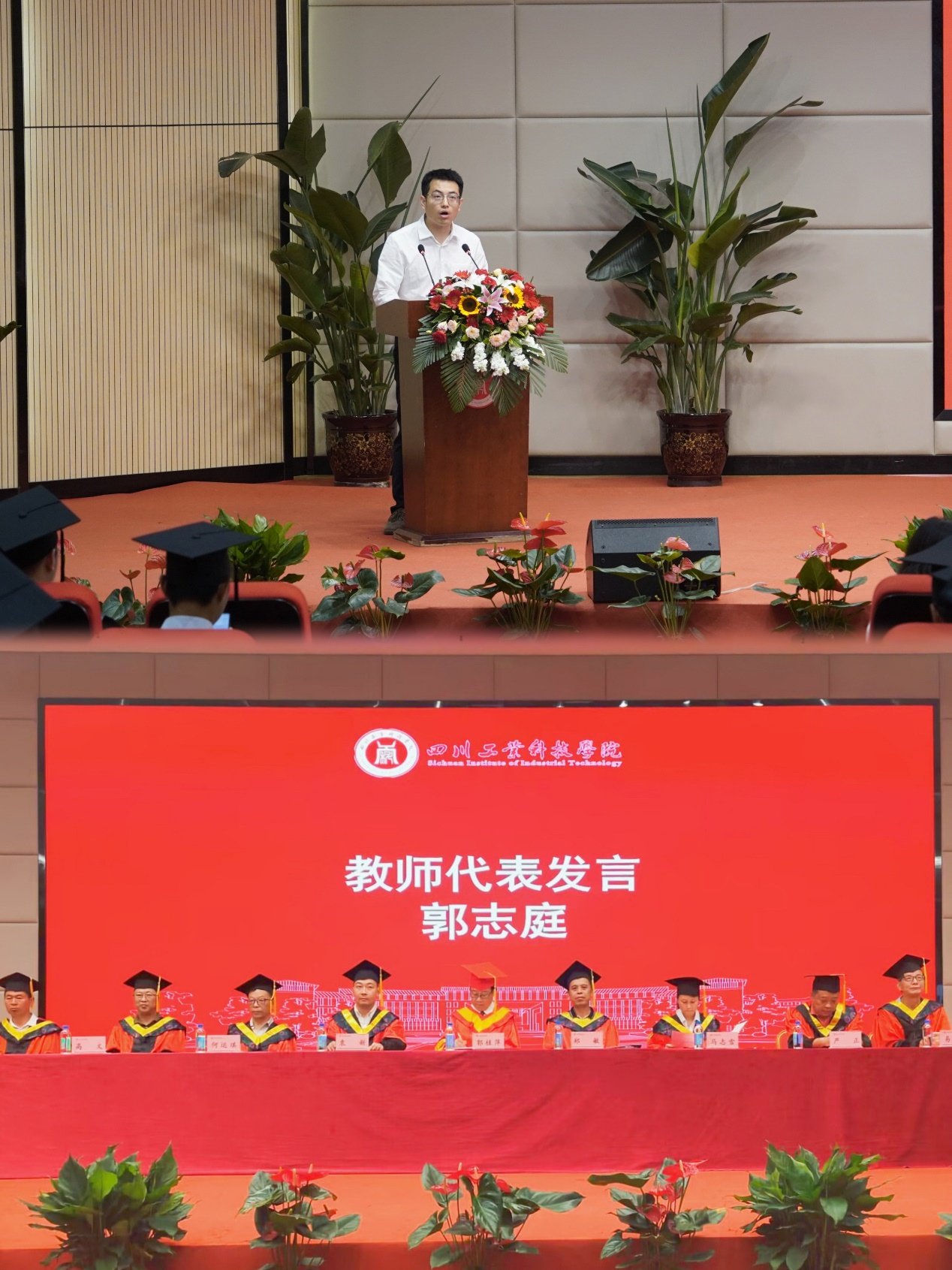 智能制造系主任郭志庭老师作为教师代表发言,并对毕业生们表达了由衷的祝贺。表示校园只是人生的一个阶段,而老师作为这一阶段的引路人,在同学们即将步入社会之际,希望同学们热爱生活,在社会中继续学习,体验人生应有的甘甜与苦乐,勇敢地闯荡出属于自己的天地。