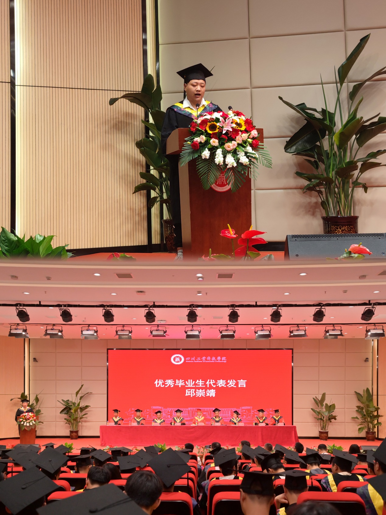 邱崇靖同学作为毕业生代表发言,表达了对母校四年栽培的感谢,对老师们孜孜教诲的感恩以及对一同奋斗上岸的同学们的美好祝愿。