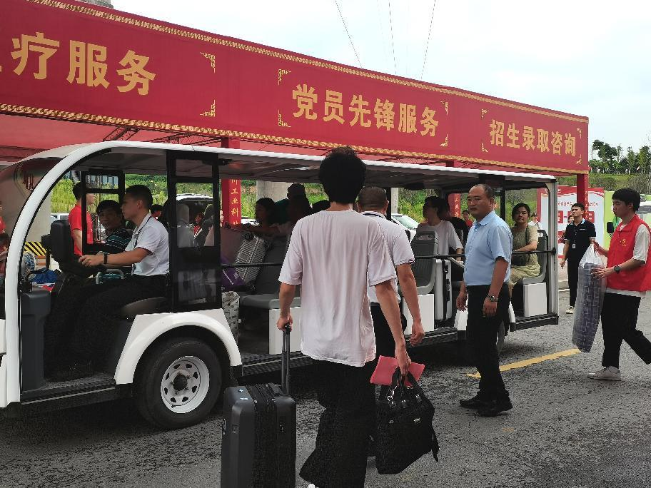 朝气蓬勃的小萌新们在接站教师和学生志愿者的指引下,乘坐学校免费迎新车辆或自驾车,抵达校内迎新点龑江学村E区外广场后,在学生志愿者的协助下,严格新生报到流程,有序办理新生入学报到手续。迎新现场,学校党委副书记杨朋亲临校内新生转运场地指导工作,学生处主动发挥学生工作头雁效应,分两组教师带队,在新生办结所有报到手续后,根据新生公寓分配情况和校园交通车调配情况,携手校车师傅和学生志愿者安全有序将新生转接至龑江、骄子、鸿儒三个学生公寓,全面打通新生入学报到“最后一公里”,倾情当好平安转运“守护人”。