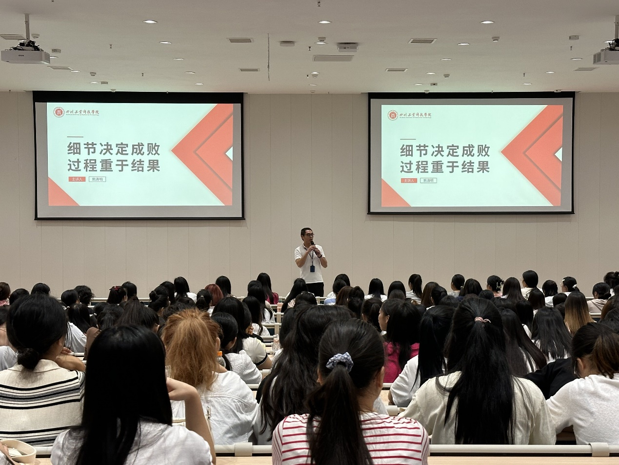 教育学院副院长熊清明发表讲话,讲话内容包括细节决定成败、过程重于结果、态度重要和学会观察,多问为什么等,使所有学生受益匪浅,明白自己应该怎样做。