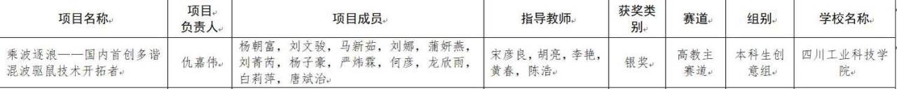 在四川省教育厅发布的《“建行杯”第九届四川省国际“互联网+”大学生创新创业大赛各赛道获奖名单》中,我校电信学院2020级学生仇嘉伟所负责的项目《乘波逐浪--国内首创多谐混波驱鼠技术开拓者》荣获四川省银奖,这是九届大赛以来学校在四川省国际“互联网+”大赛中所取得的突破性进展。