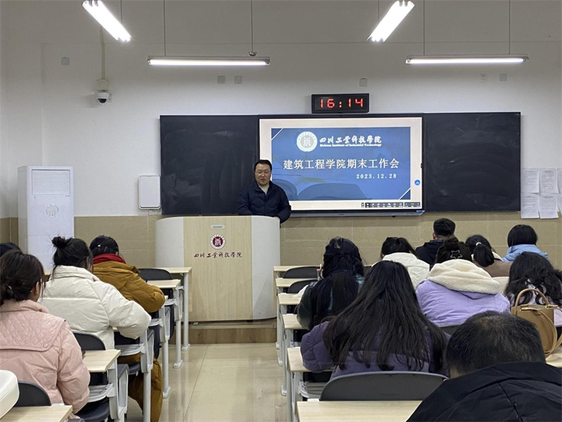 12月28日下午,建筑工程学院于龑江C-410教室组织召开期末工作会,安排部署2023-2024学年第一学期期末工作。学院院长、党总支副书记、副院长以及全体教职工参加会议。