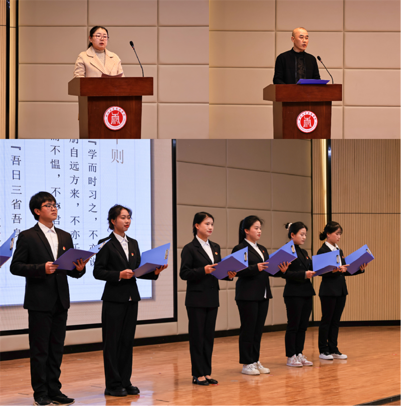朗读属于每一个人,而不局限于学生群体。在“朗读经典章节”环节,分享者将经典用朗读的形式传达出来,让人身临其境。儒家经典《孟子》对中华文化影响至深,公共教研室刘红君老师朗读了《孟子》(节选)并深入解读,更好的帮助大家理解了所选章节传达的思想;《阅读是一座随身携带的避难所》出自英国作家威廉·萨默塞特·毛姆,公共教研室赵福利老师朗读了其中的章节On Reading,赵老师强调阅读观点“enjoyable”“interest”,在他的解说中,让听众对阅读有了新的认识;“学而时习之,不亦说乎”“三人行,必有我师焉”,《论语》在李小庆、王鑫鑫等10名同学的朗读声中如雷贯耳,激活了身体中沉睡已久的DNA,让时间倒流回紧张的高中课堂。